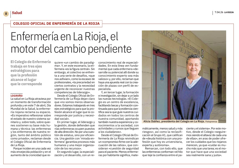 En este 7 de abril, Día Mundial de la Salud, la enfermería riojana reclama su espacio. Es imperativo reflexionar sobre el estado de nuestro sistema sanitario y, sobre todo, sobre quiénes sostienen su base más humana y técnica: las enfermeras y enfermeros de nuestra región tanto del ámbito público como privado.