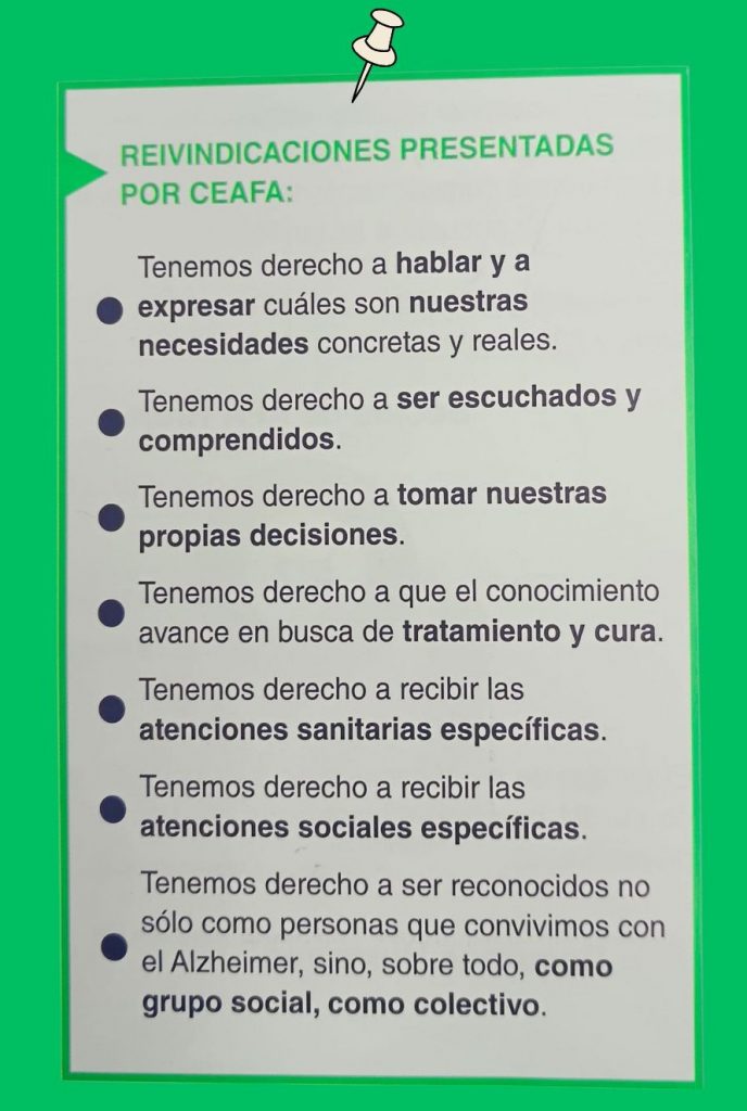 Este año las reivindicaciones para el Día Mundial, que se celebra con el lema Igualando Derechos, las han propuesto los propios enfermos de Alzheimer. Y son las siguientes: