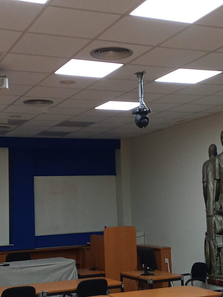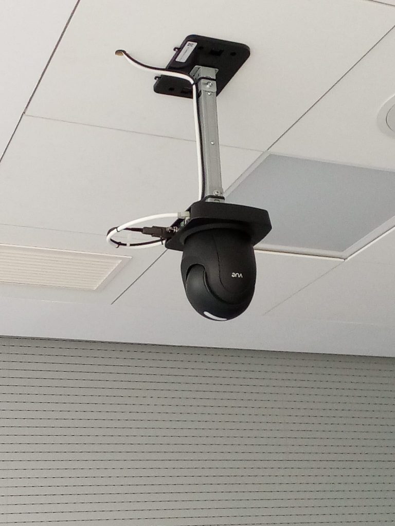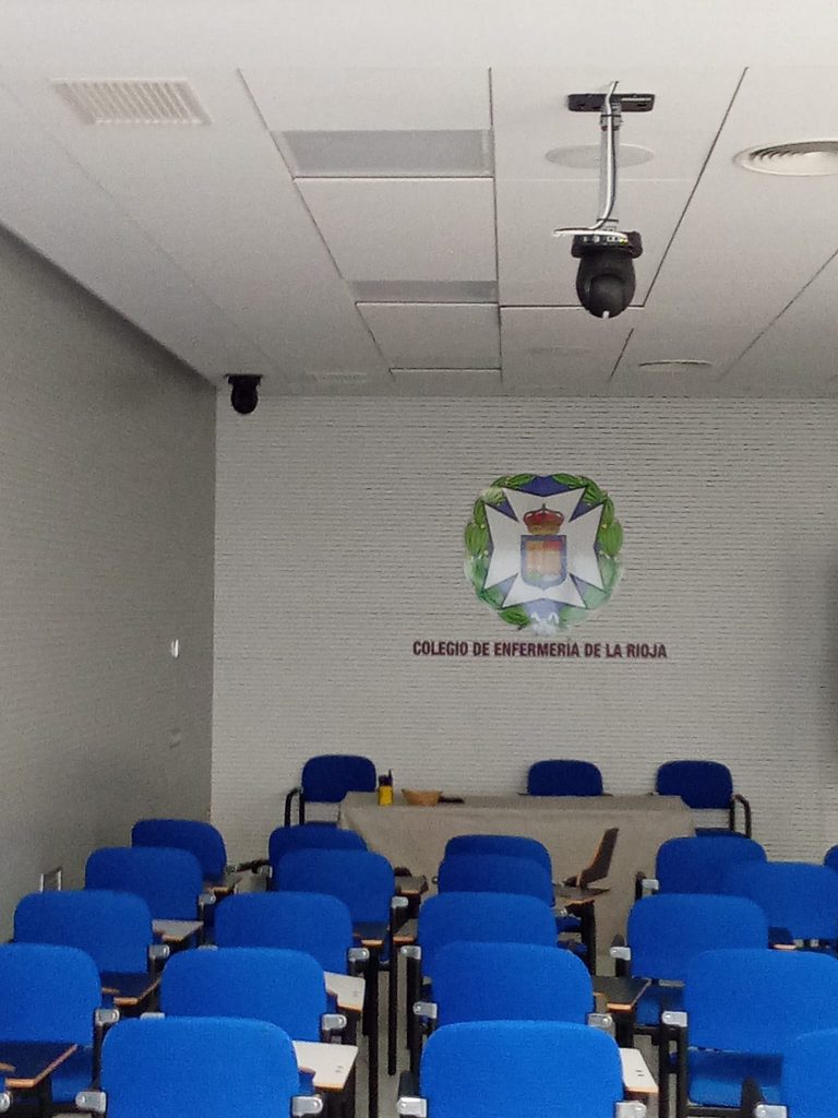 2. Instalación de cámaras y mesa de edición en aula de formación y salón de actos para la conversión en aula hibrida con el objetivo de poner en marcha una plataforma de formación online, Moodle, y la posibilidad de retransmisión y comunicación de las jornadas y charlas. (1ª FASE)